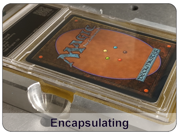 Our slabs are designed for surface quality, stability and durability. We have them manufactured from the high-performance plastic PMMA to meet our requirements. They are provided with our logo as a safety mark. In the slab, each card rests well protected in a PCG inner sleeve. Careful blowing with purified compressed air ensures a clean environment in the slab before the metal slab and card are inserted. All slabs are selaed using ultrasonic welding to achieve maximum bond strength and reliability with minimal visibility of the weld on the slab.
